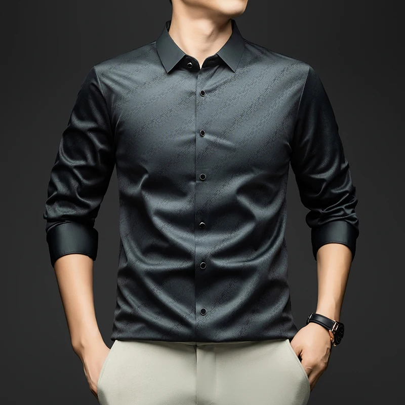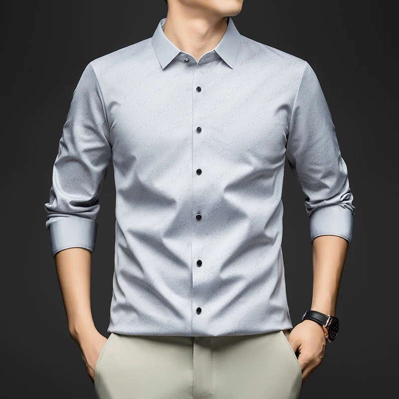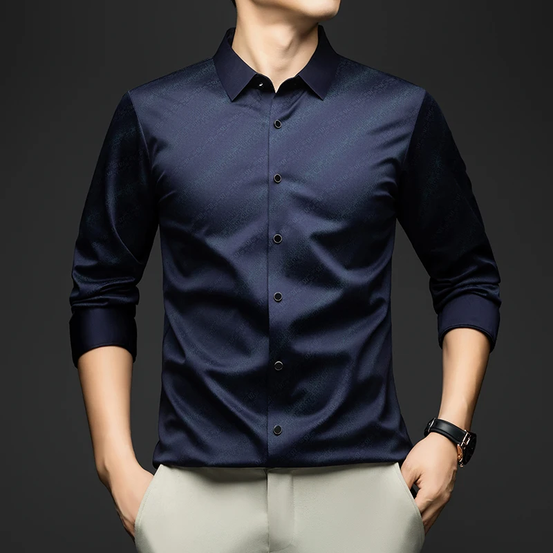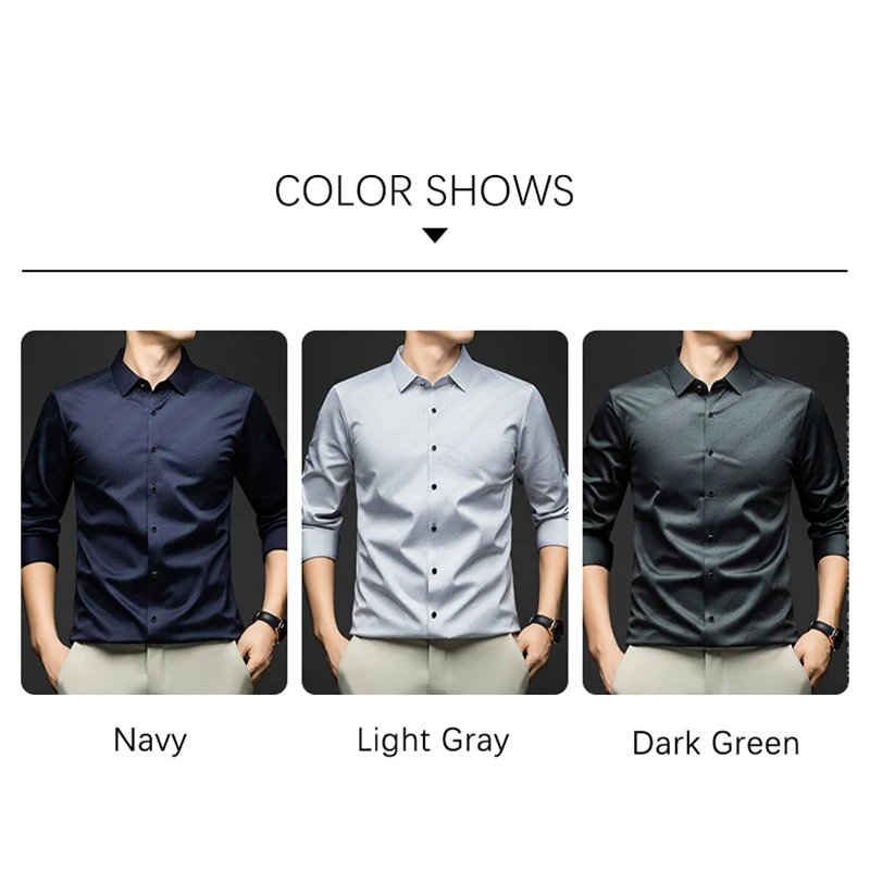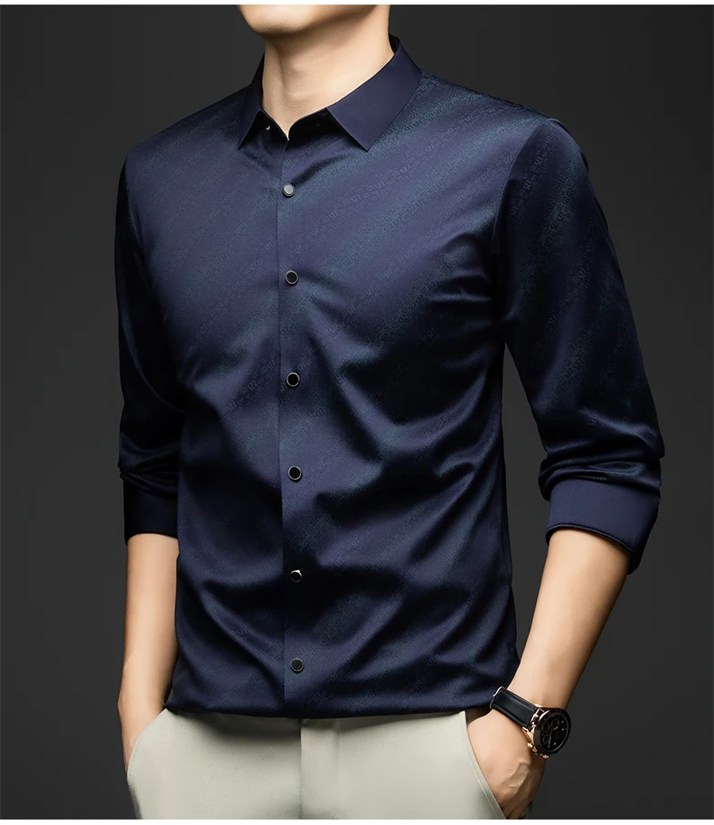 whether full opening: Yes High-concerned chemical: None Craft of Weaving: Tatting Applicable Season: Spring And Autumn Applicable Scene: Office Place Of Origin: China (mainland) Closure Type: Single Breasted Pattern Type: Solid Sleeve Style: regular Model Number: Elegant Men Shirt Fabric Type: Broadcloth Style: Classic Style Collar: Turn-Down Collar Sleeve Length(cm): Full Material: POLYESTER,Spandex,Silk Shirts Type: Casual Shirts Brand Name: BROWON Origin: Mainland China CN: Guangdong Gender: Men Item Type: SHIRTS Material: 91.1%Polyester+7.3%Spandex+1.6%Mulberry silk